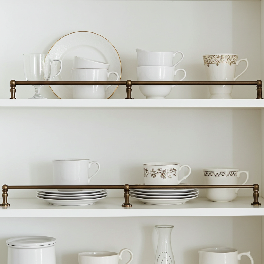 Antique brass gallery rail brings timeless elegance to your open shelves and cabinetry. Handcrafted in solid brass with a natural patina finish, this decorative edge rail is both functional and stylish.