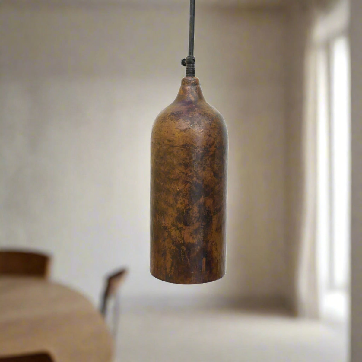 This pendant light is crafted with high-quality solid copper, providing a unique and rustic look that will add character and warmth to your kitchen. The half-oxidized outside and natural copper inside of the lamp creates a beautiful contrast that is sure to impress.