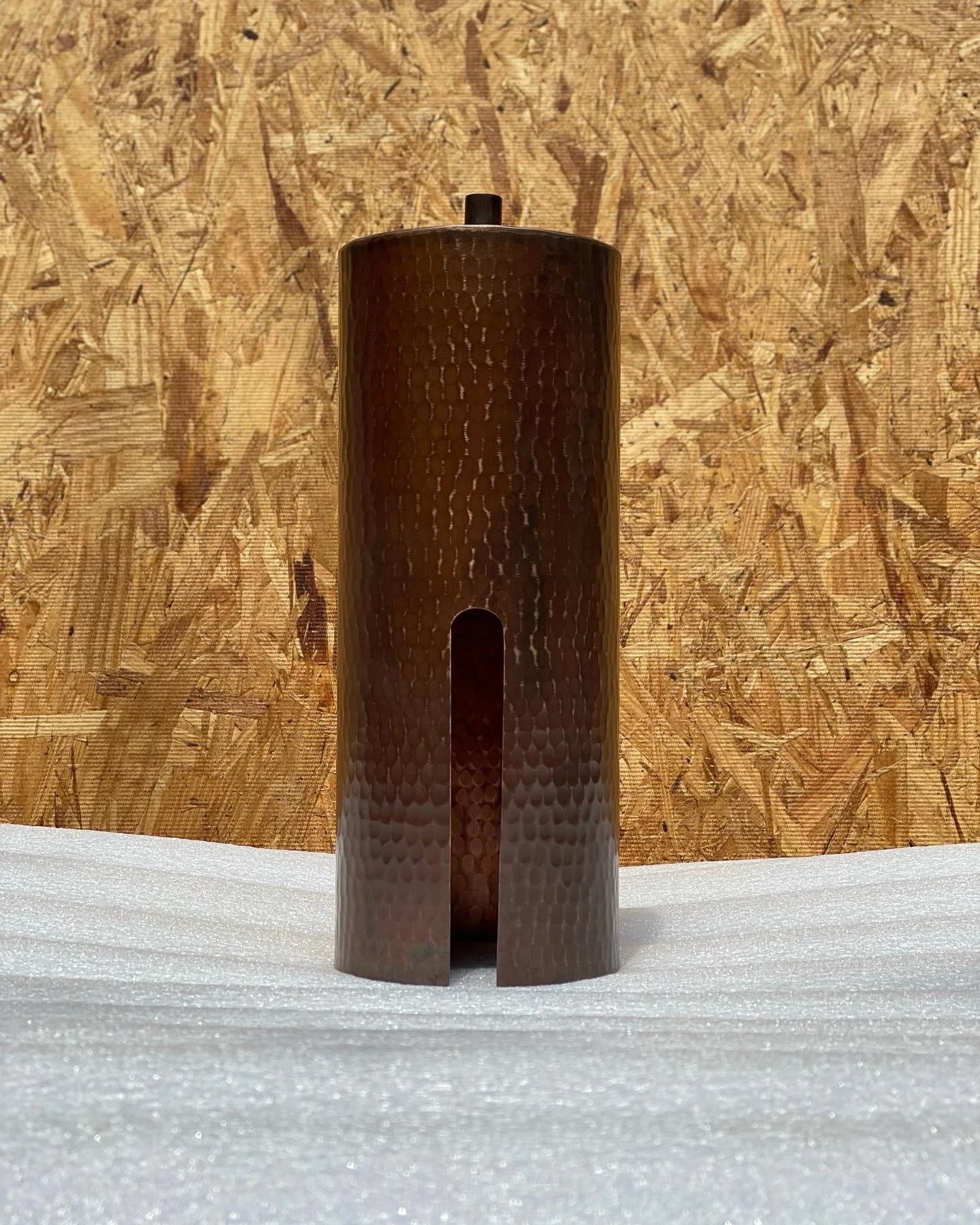 This pendant light is crafted from high-quality aged copper, ensuring durability and a timeless aesthetic. The handcrafted design adds a unique touch, making each piece distinct and full of character.