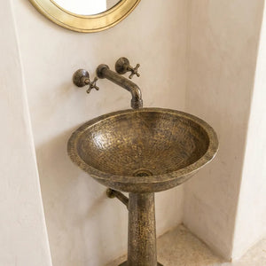 Each artisan brass pedestal sink is handmade by experienced craftsmen using traditional techniques, resulting in a premium, one-of-a-kind bathroom centerpiece.Description