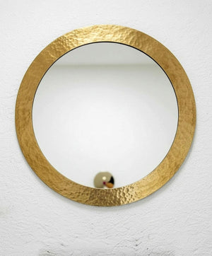 Hammered Brass Round Wall Mirror – Handmade Bathroom Vanity Accent