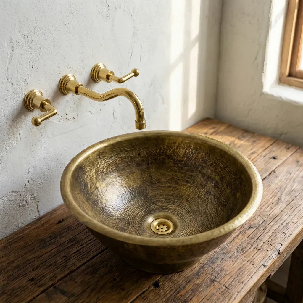 Antique Hammered Brass Vessel Sink Top Mount Bathroom Vanity