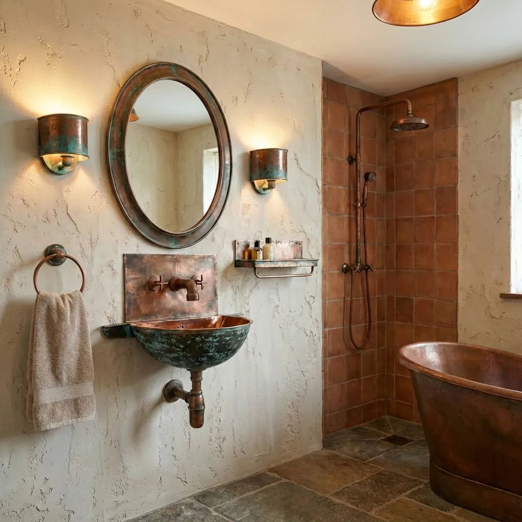 1. How Does the Green Patina Finish Enhance Bathroom Decor?