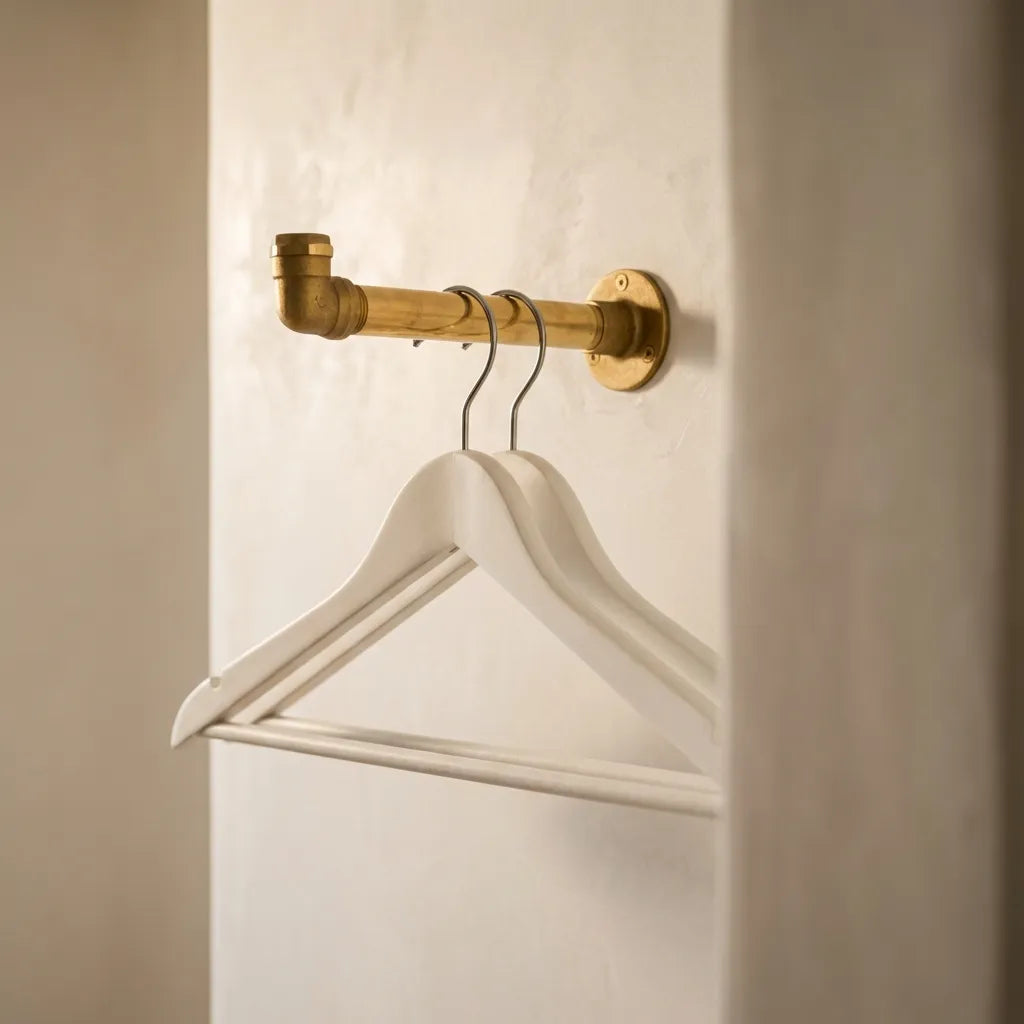Solid Brass Wall Mounted Clothes Rack – Industrial Hanging Rod for Entryway or Closet