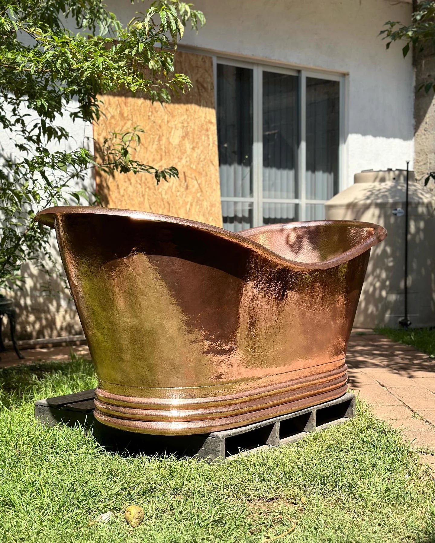 The solid copper finish adds a luxurious and timeless touch, making the bathtub a stunning focal point in any bathroom with its elegant and warm appearance.