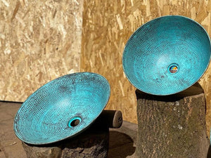 Bring color and character to your bathroom with this turquoise hammered copper sink. Handcrafted by skilled artisans, the oval design adds elegance while the vibrant turquoise patina creates a bold statement piece for any vanity.