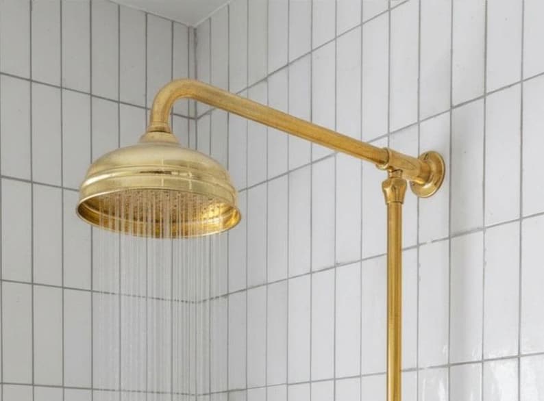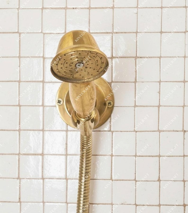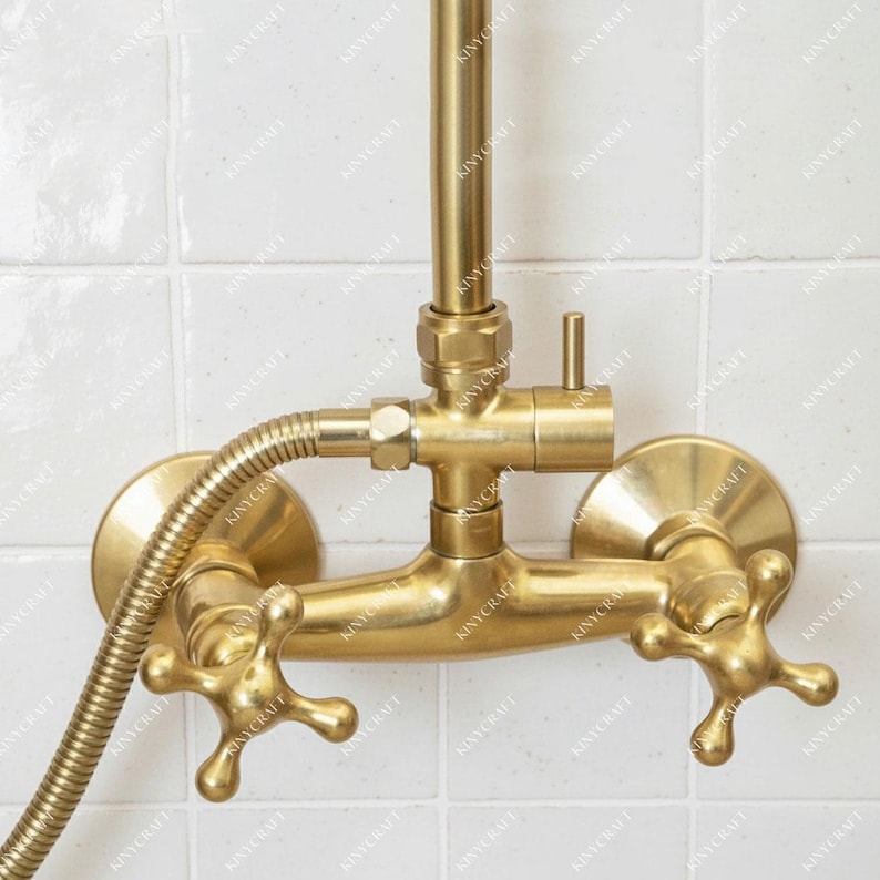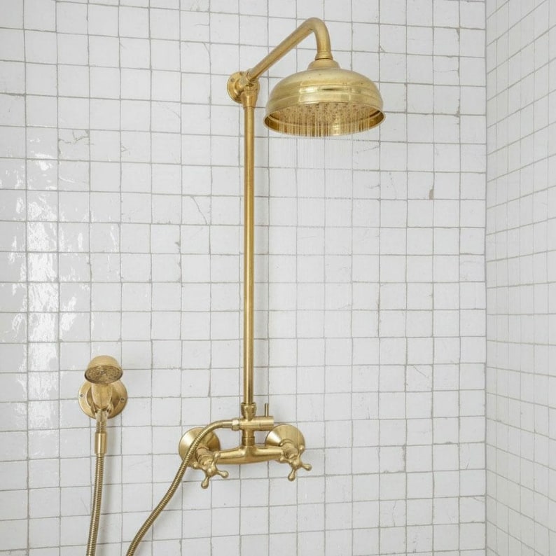 Unlacquered Brass Shower System – Wall Mount Mixer with Handheld