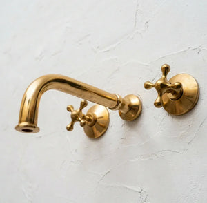 Unlacquered Brass Wall Mounted Bathroom Faucet with Cross Handles