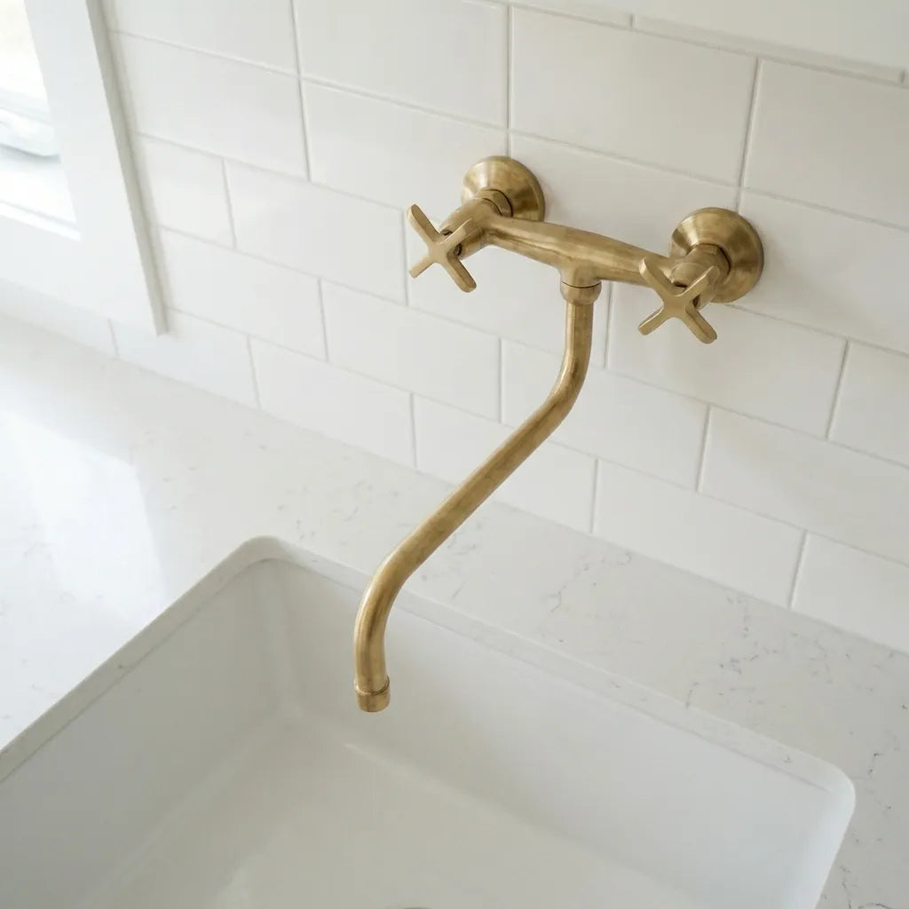 Wall-mounted brass kitchen faucet without polish made by hand from pure brass