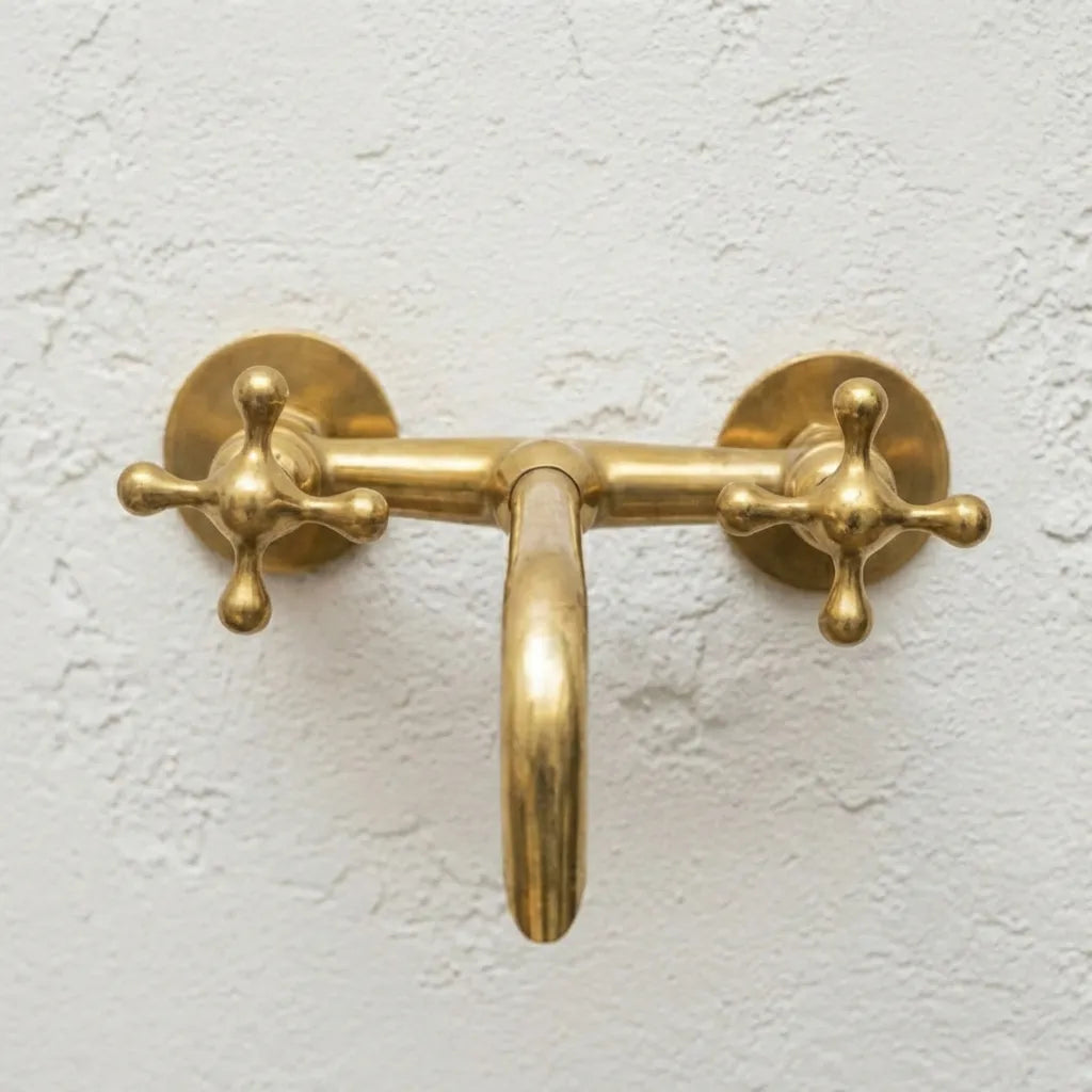 With our wall-mounted bathroom faucet with cross handles, solid brass tub filler faucet, and unlacquered brass bathroom sink faucet, you can turn your bathroom into an outstanding bathroom design. This handcrafted vanity faucet is the ideal accent to your bathroom decor since it blends elegance, practicality, and longevity. This gorgeous bathroom fixture will provide a touch of class and timeless appeal to any area.