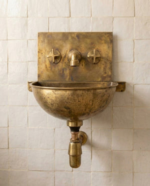 Vintage Brass Wall Mounted Sink with Unlacquered Brass Faucet